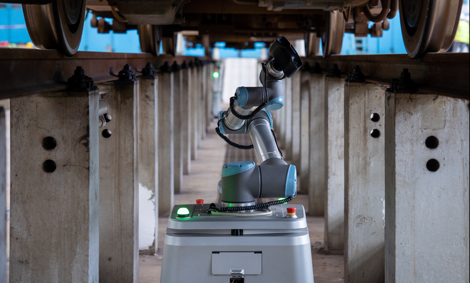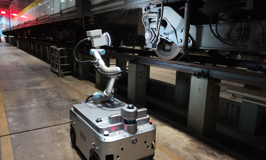 列車車底檢測(cè)機(jī)器人采用輪式運(yùn)動(dòng)平臺(tái)組合機(jī)械臂、視覺(jué)系統(tǒng)的方式,運(yùn)行于列車檢修地溝中,代替人工完成列車車底、車側(cè)外觀的檢測(cè)任務(wù),解決傳統(tǒng)人工檢測(cè)遇到的現(xiàn)場(chǎng)環(huán)境艱苦、勞動(dòng)強(qiáng)度大、受人員主觀因素影響等問(wèn)題,從而降低檢修人員工作強(qiáng)度、提升檢修質(zhì)量,及時(shí)全面消除列車運(yùn)行安全隱患。